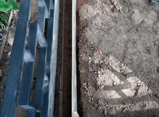 Параллельно с этим ведутся сварочные работы: к основанию оградки в стык к бетонному фундаменту привариваем борта для брусчатки.